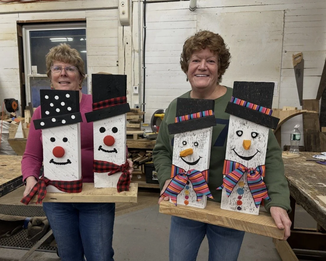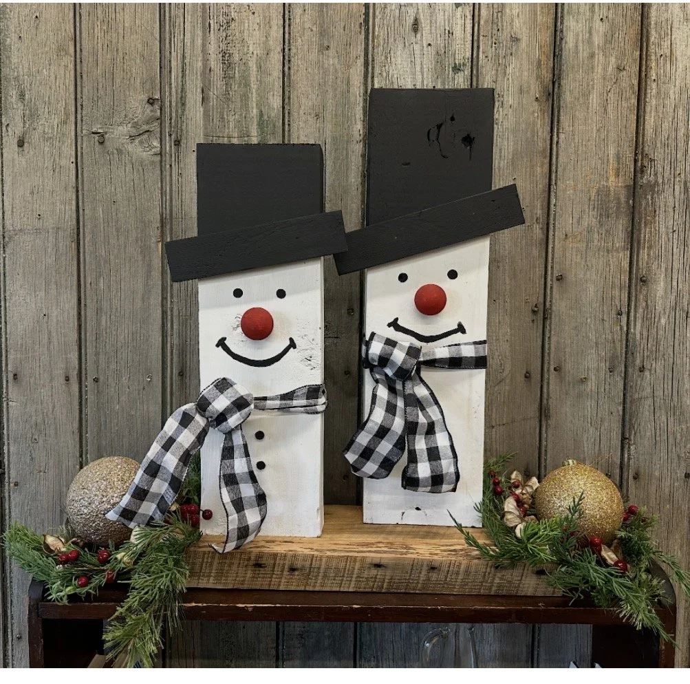 Christmas in July DIY workshop! In this class, you’ll create your very own set of two rustic snowmen using reclaimed barn wood.